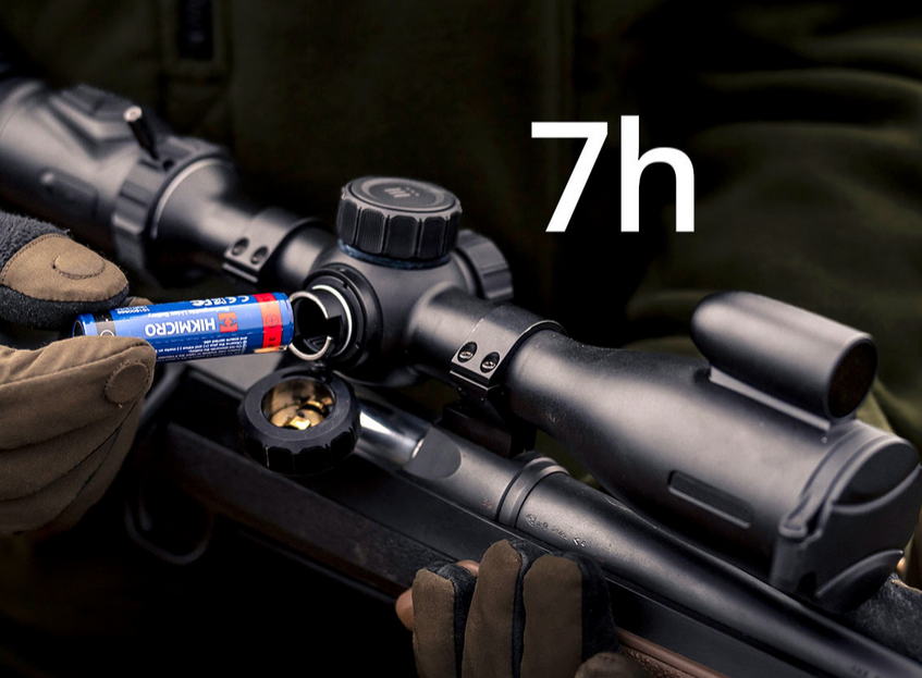 Puškohled je doma v lese i na otevřeném terénu – nabízí denní detekci 1500 m a noční detekci 350 m. Optické zvětšení je 4×, digitální zoom 6×, zorné pole 7,2° × 4,0°. Poznámka: Externí přísvit není součástí balení (lze dokoupit samostatně).