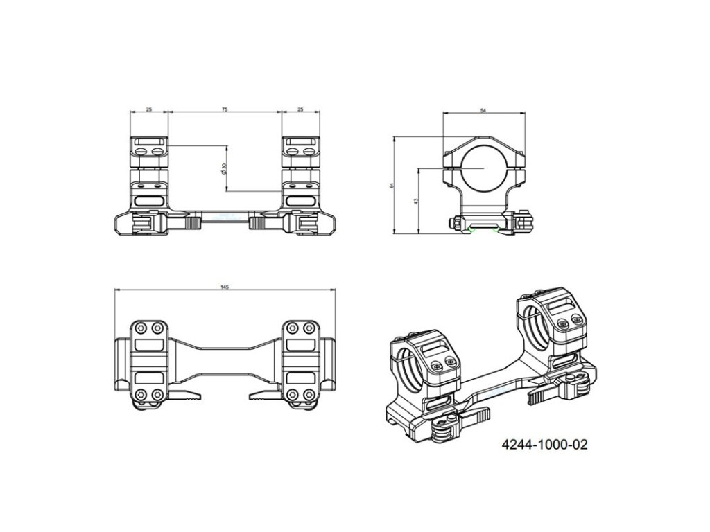 Axiálně je montáž aretována ocelovou vložkou. Významnou vlastností montáže je jednoduchá možnost regulace síly přítlaku. Montáž je symetrická, lze ji tedy bez problémů otočit a použít např. pro levoruké provedení zbraně. Celý povrch montáže je důsledně antireflexní, ocelové části jsou opatřeny speciální antikorozní povrchovou úpravou.