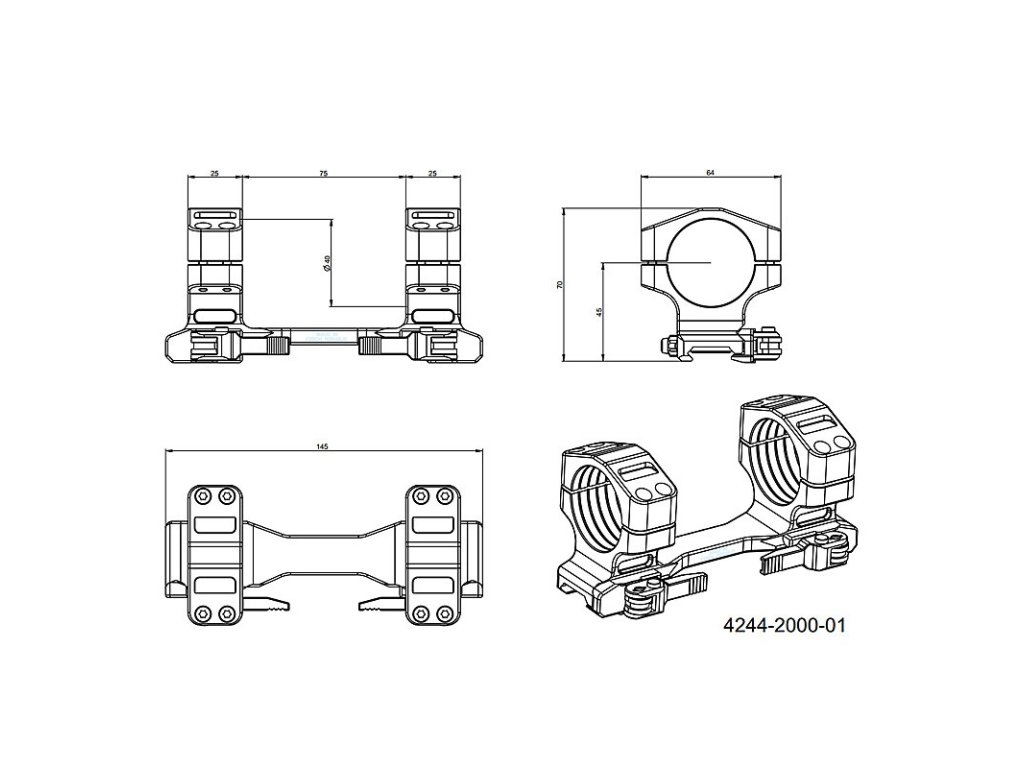 Rychloupínací páka je ergonomicky tvarována a umožňuje pohodlnou manipulaci také v zimních rukavicích. Axiálně je montáž aretována ocelovou vložkou. Významnou vlastností montáže je jednoduchá možnost regulace síly přítlaku. Montáž je symetrická, lze ji tedy bez problémů otočit a použít např. pro levoruké provedení zbraně.