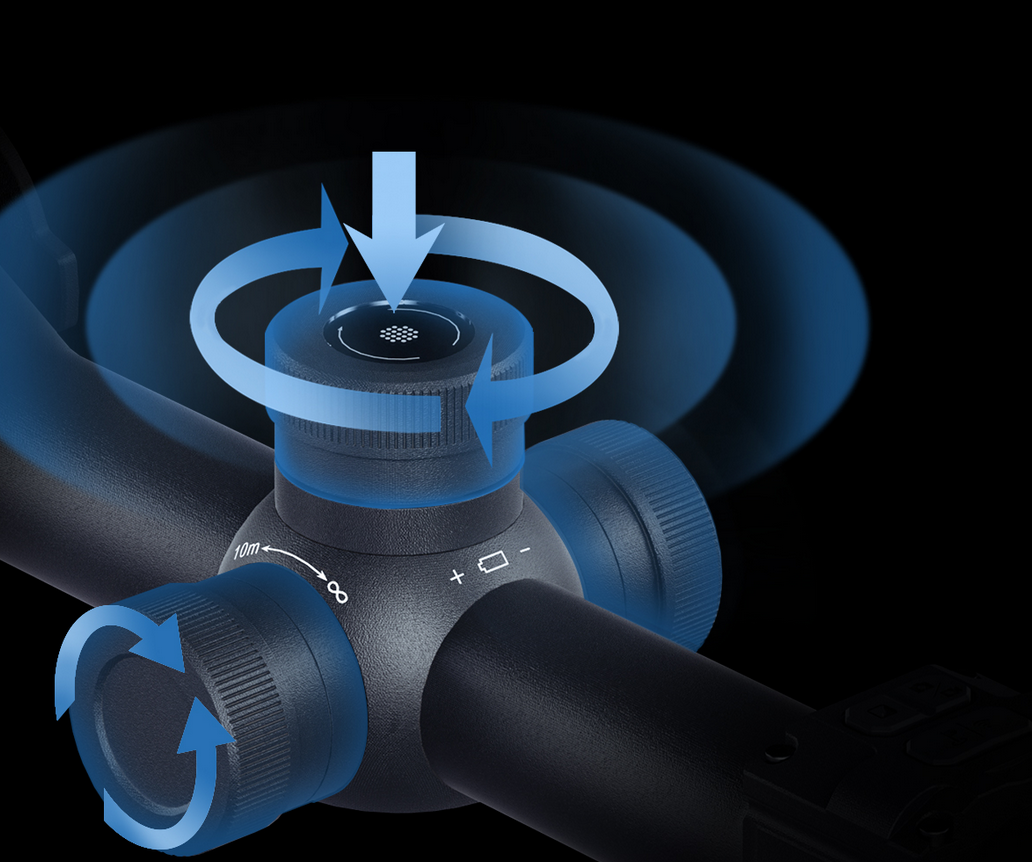 Přepracovaný, nízkoprofilový ovládací knoflík navazuje na tradiční vzhled denních optik, ale kombinuje jej s moderní funkčností. Rozšířený vroubkovaný povrch zajišťuje jistý úchop a přesné nastavení i v nepříznivých podmínkách nebo při práci v rukavicích.